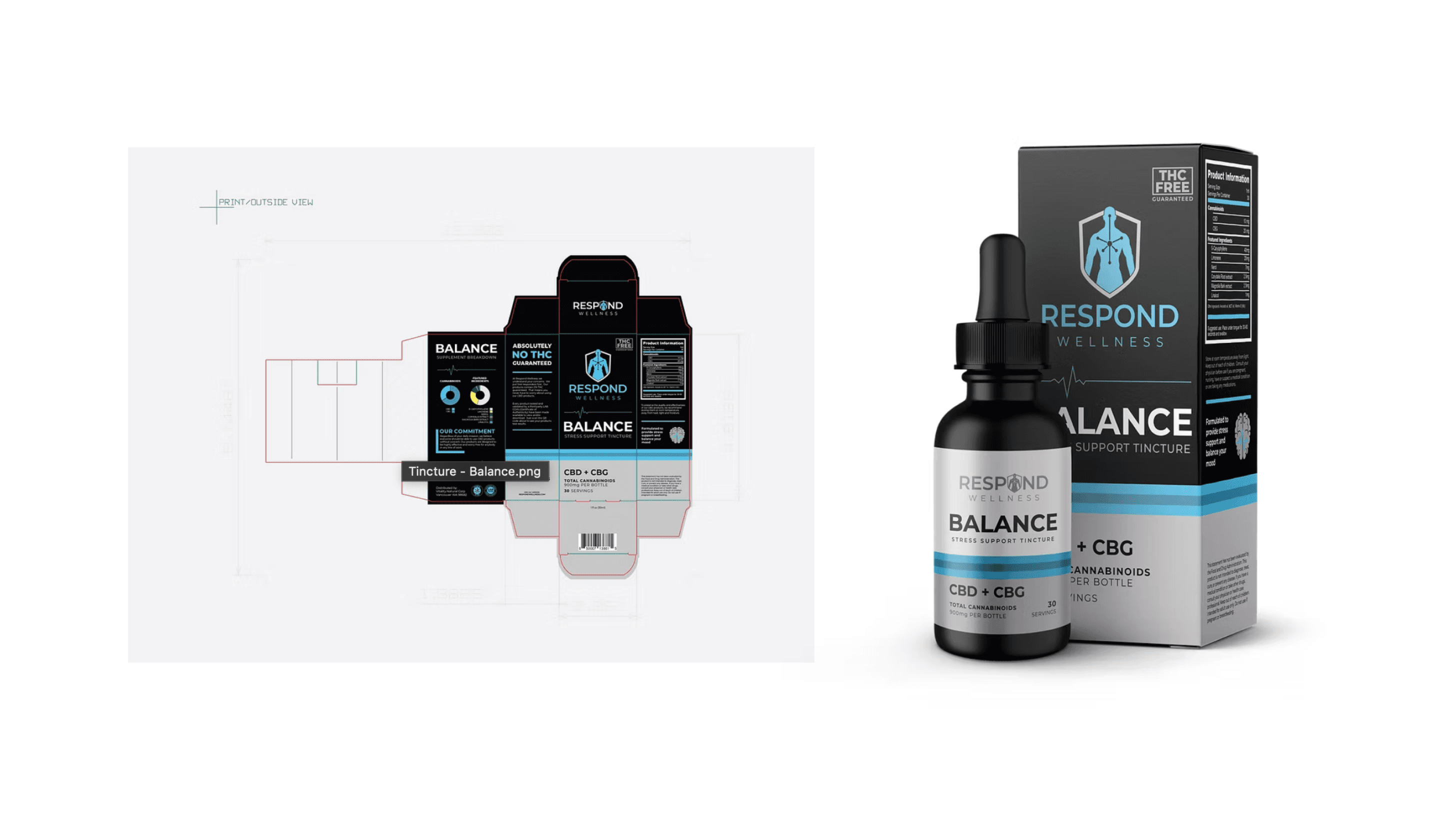 The Respond Wellness packaging design incorporates thoughtful details that honor the brand’s firefighter roots. The firefighter-inspired reflective strips featured on the box pay homage to the owners’ profession and symbolize strength, dedication, and community service. The clean typography and modern design elements ensure clarity while maintaining a professional aesthetic. Each product label highlights key benefits, creating an approachable yet impactful visual identity that resonates with first responders.