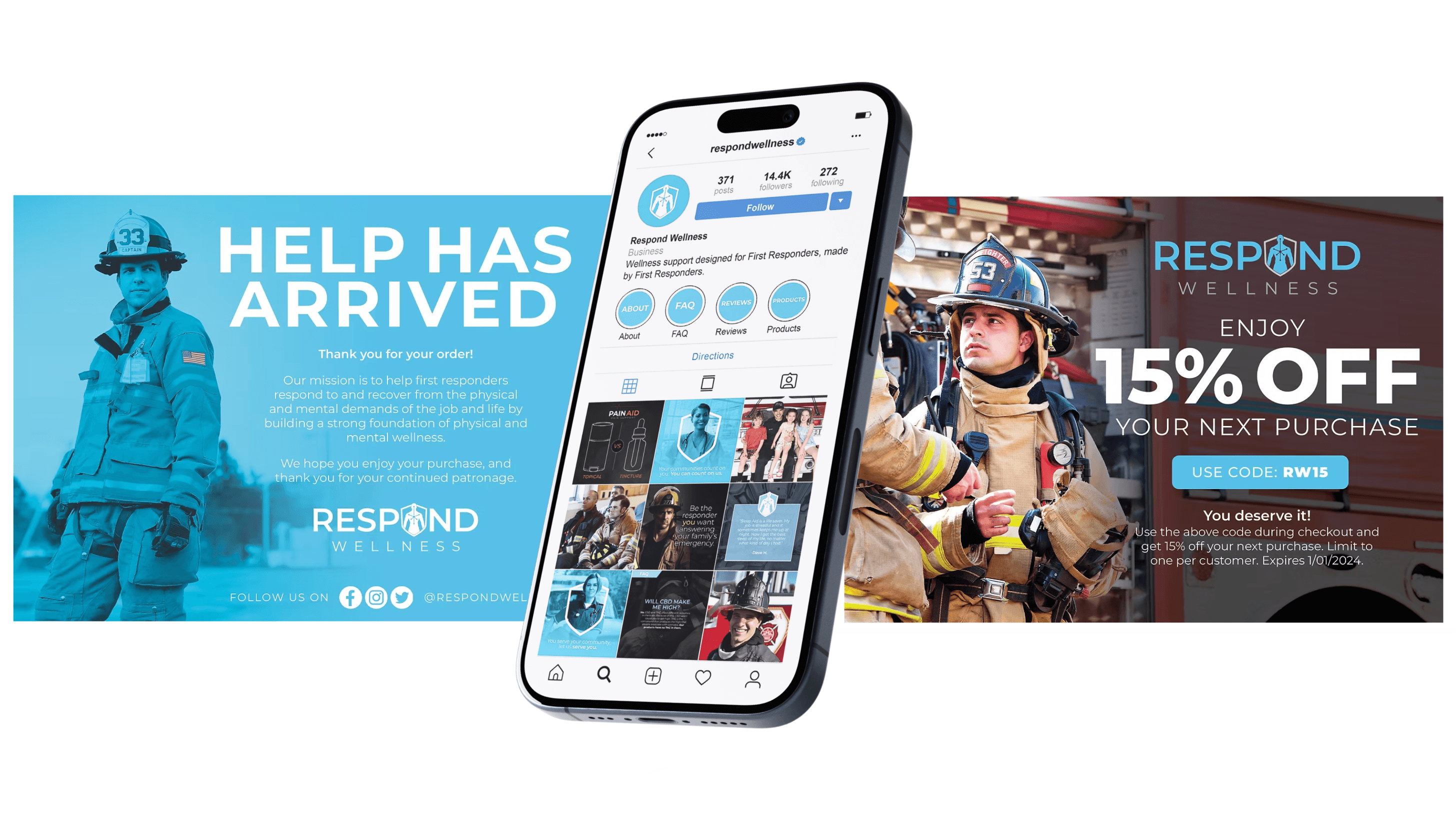 The Respond Wellness marketing materials were developed to reinforce brand identity across social media posts, display ads, and a comprehensive brand guide. Social media campaigns focus on connecting with first responders through relatable imagery and messaging that emphasizes wellness support. Display ads are designed to capture attention with bold visuals and clear calls to action. The brand guide ensures consistency in tone, colors, typography, and imagery across all platforms, fostering trust and recognition among the target audience.